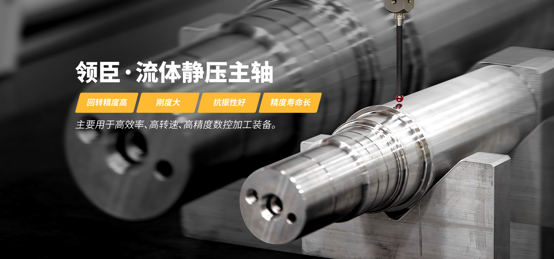 領臣特色產品為流體靜壓主軸,具有回轉精度高、剛度大、抗振性好、精度壽命長的特點,主要用于高效率、高轉速、高精度數控加工裝備。